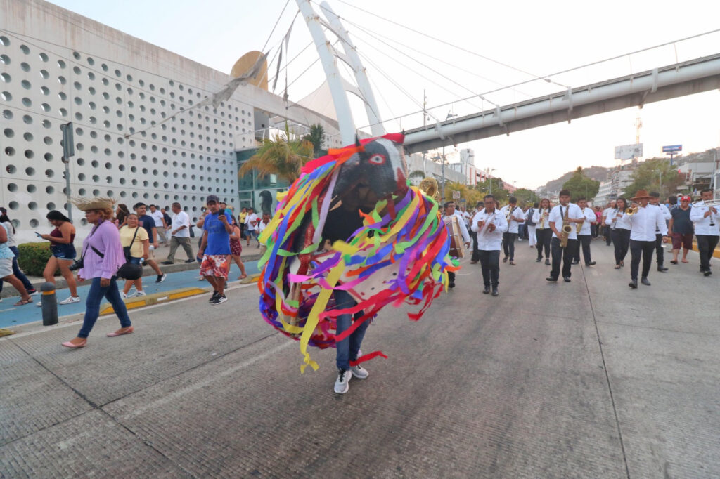 En el segundo día de actividades del Jolgorio Acapulqueño 2023, locales y turistas, disfrutaron de una tarde de fiesta y cultura en el primer cuadro de la ciudad, con la Calenda Oaxaqueña.