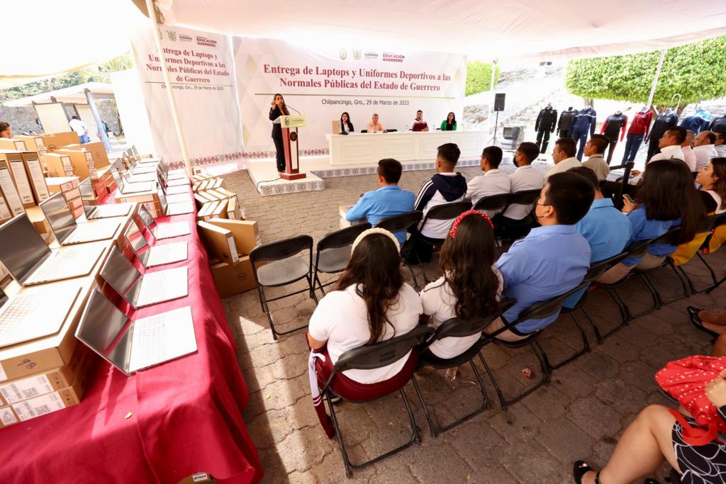 «La educación es la clave para el desarrollo y bienestar de Guerrero y vamos a redoblar esfuerzos para seguir invirtiendo en la formación de los docentes», afirmó la gobernadora Evelyn Salgado Pineda al entregar mil 280 Laptops, así como uniformes deportivos beneficiando a más de 2 mil estudiantes de las ocho normales públicas del estado con una inversión superior a los 23.8 millones de pesos.