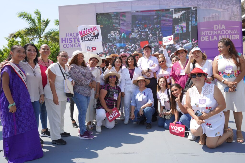 En el templete Ebrard ya era esperado por la senadora por Guanajuato, Malú Mícher. Se congregaron la presidenta de la asociación civil Por el futuro Sí Acapulco, Patricia Quiroz Marín; Rosalinda Bueso, esposa de Marcelo Ebrard, la diputada federal Aracely Ocampo, así como la diputada local Jessica Alejo, las representantes nacionales y estatales de todas las expresiones de apoyo a Marcelo, regidoras y “mujeres destacadas de todo el estado”, se leyó en un boletín del equipo de Luis Walton Aburto, quien no estuvo en esta marcha. En el mismo documento, se indicó que “a esta magna concentración por el Día Internacional de la Mujer del equipo de Luis Walton acudieron: Magdalena Camacho, Claudia de la O, Mayra Reyna, María Antonieta Guzmán, Liduvina Mónico, Marliz Añorve, Deysi Guerrero, Margarita Villanueva, Aleida Alarcón, Margarita Nava y Mónica García, entre otras”.