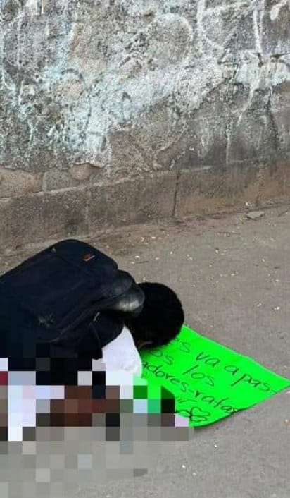 Bajo su cabeza le colocaron una cartulina con un mensaje.