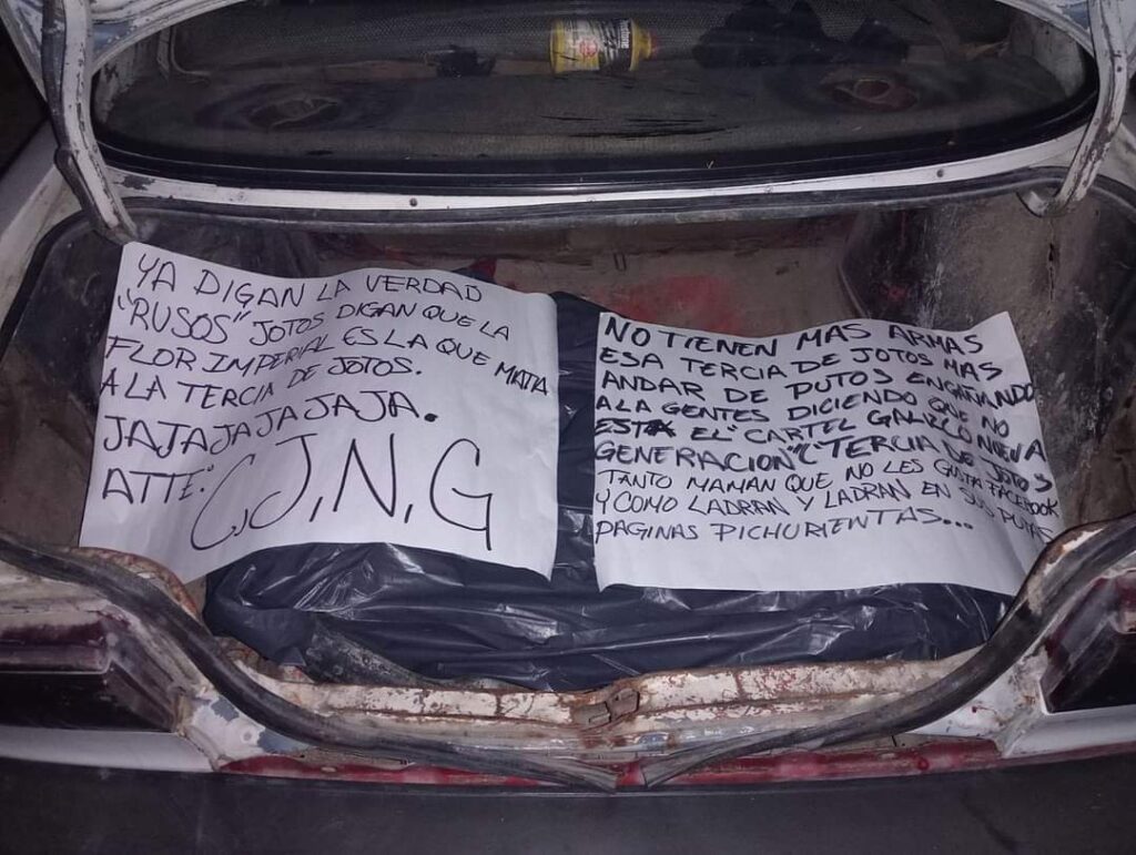 El personal de los servicios periciales acudieron para iniciar las diligencias, por lo que al abrir la cajuela localizaron las bolsas de plástico al parecer con tres cuerpos, cuya identidad por el momento se desconoce.